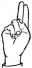 На ћирилици написано АРСЕНИЈЕ ШВРАКА састоји се из 14 слова [?]. Исписано ћириличном једноручном азбуком за глувонеме: